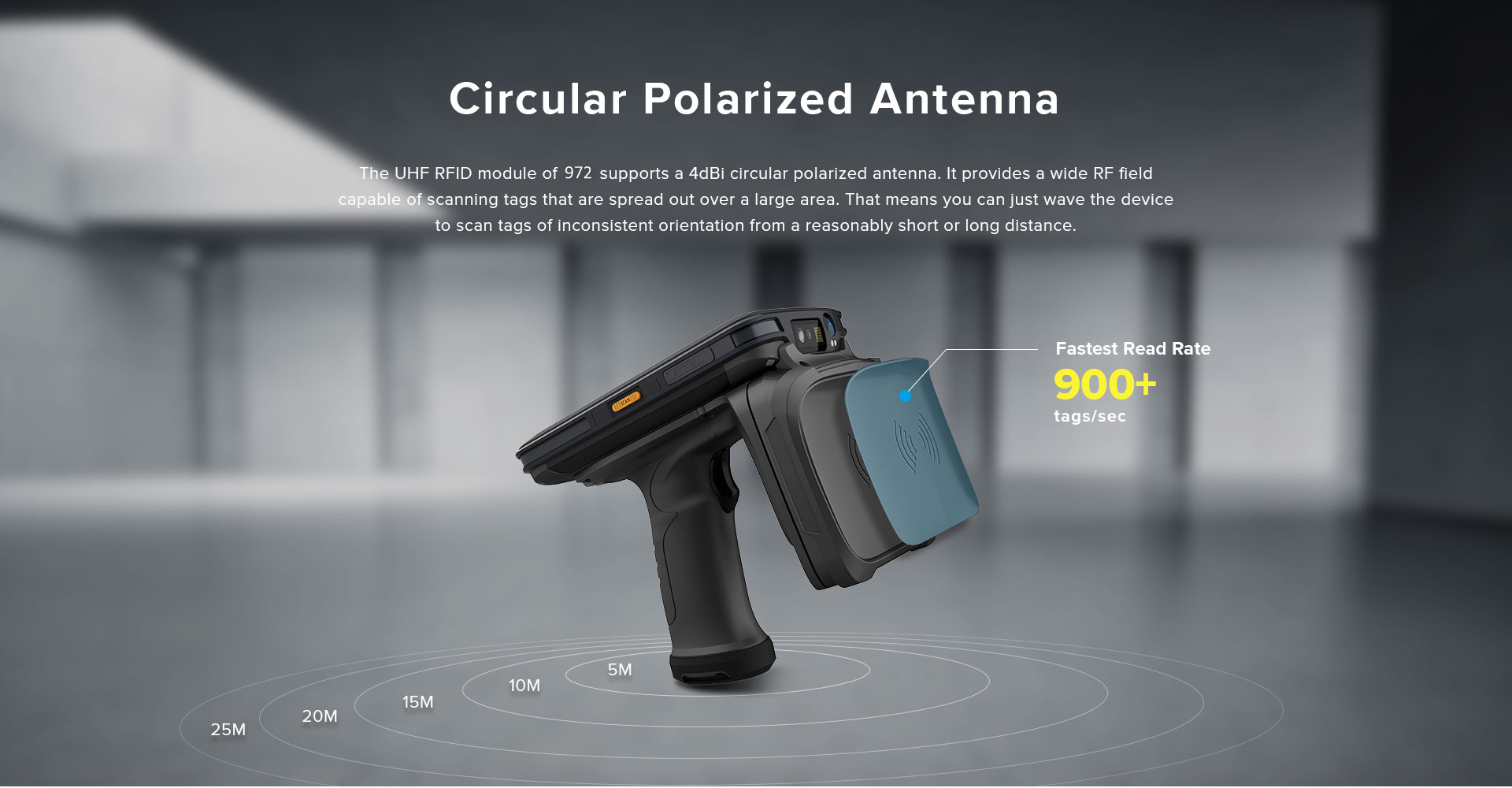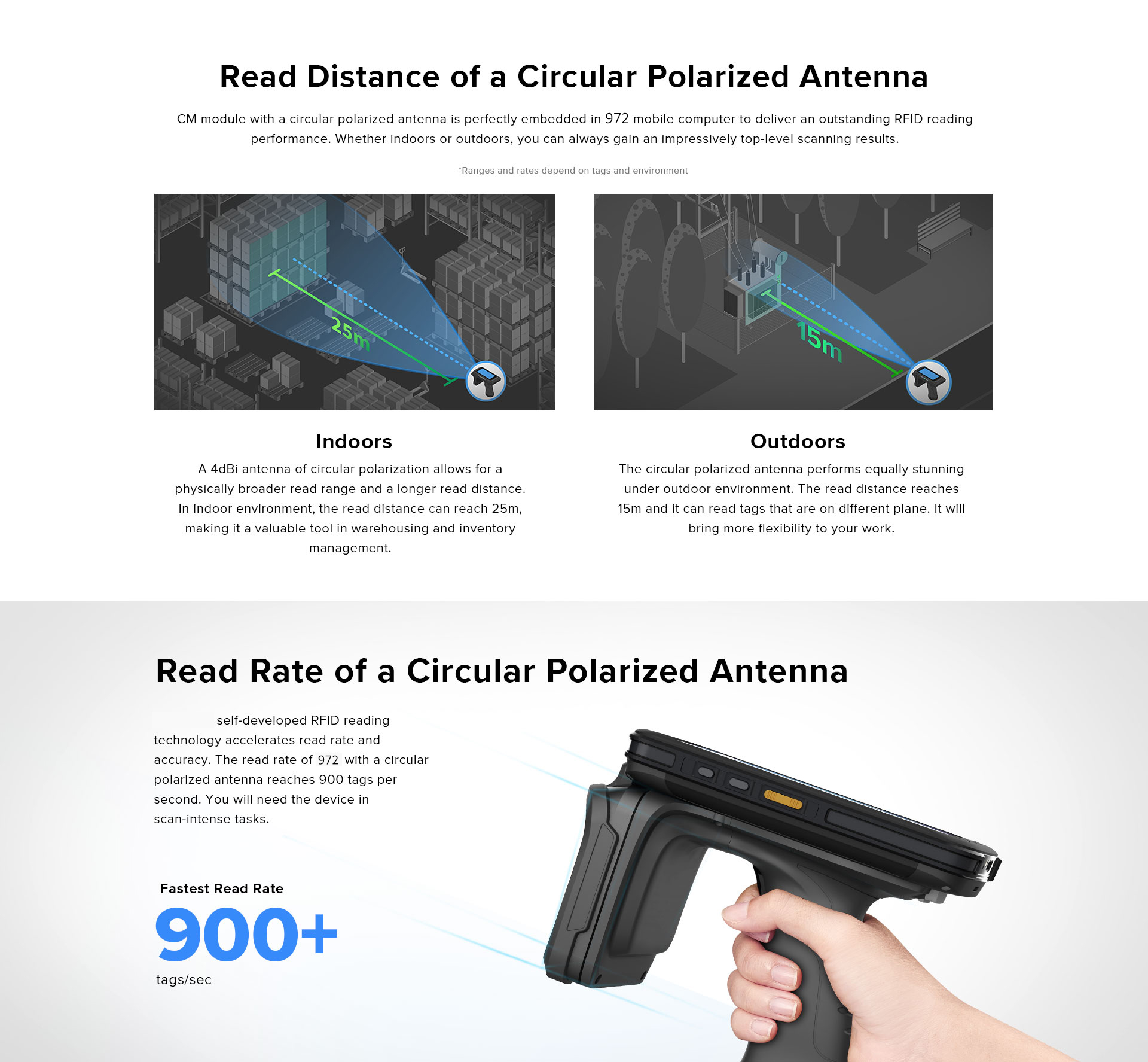 क्षमता। इसे R2000 रैखिक या वृत्ताकार ध्रुवीकृत एंटीना से सुसज्जित किया जा सकता है। यह लंबी दूरी से बड़ी संख्या में टैग पढ़ सकता है।